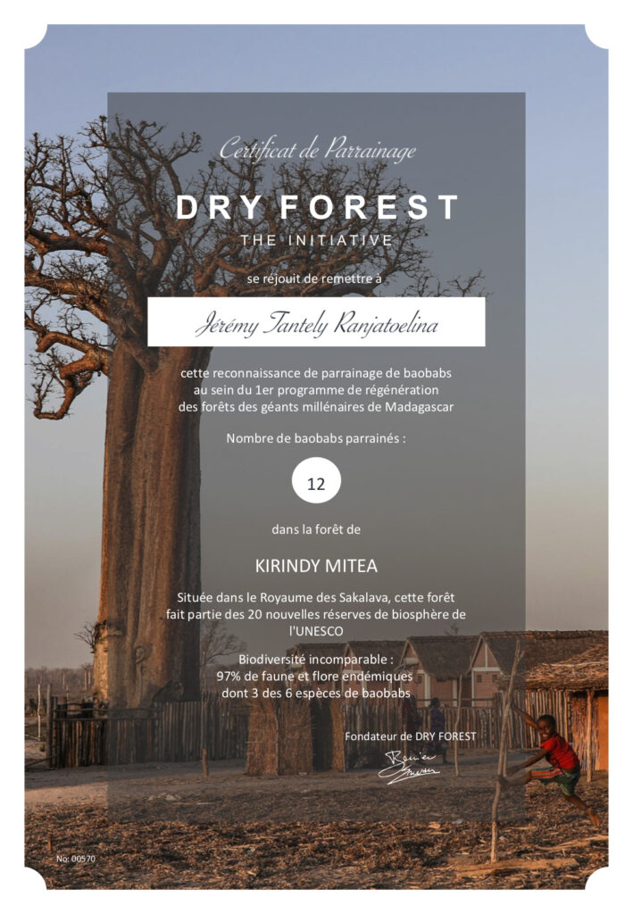 It’s pretty easy: to sponsor a baobab, please fill out the form below so we can get your details. Afterwards, Dry Forest will send you a quote by e-mail. Proceed to payment directly, through a Mobile-banking account (M’Vola), bank transfer or Paypal (via the YesTransfer website).